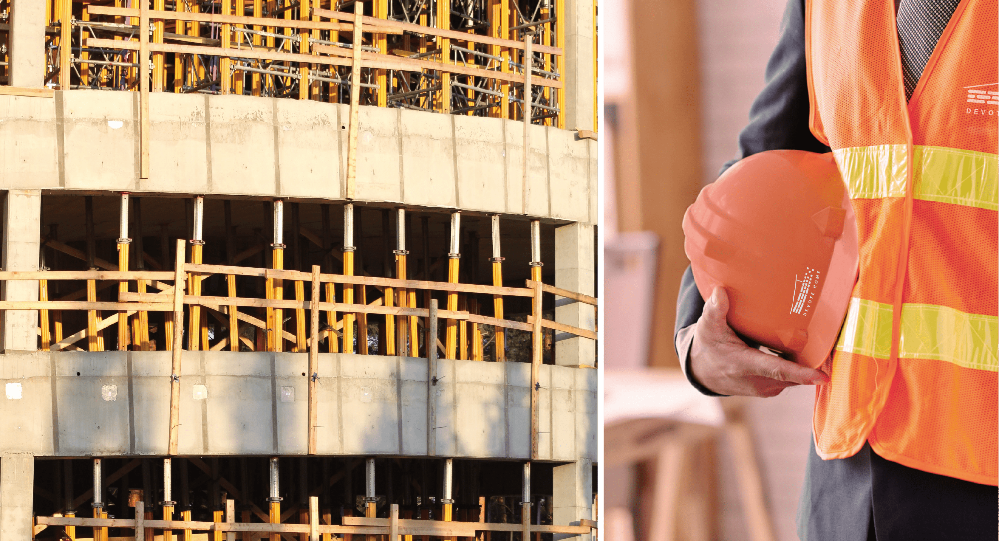 一心一意,一磚一瓦 一,象徵對品質的專一、第一。 白質透過磚塊逐漸成形,象徵無數專注、成就專一。 橘色及墨色對比,呈現工程現場警戒標示的氛圍,象徵專業嚴謹的住宅工程。